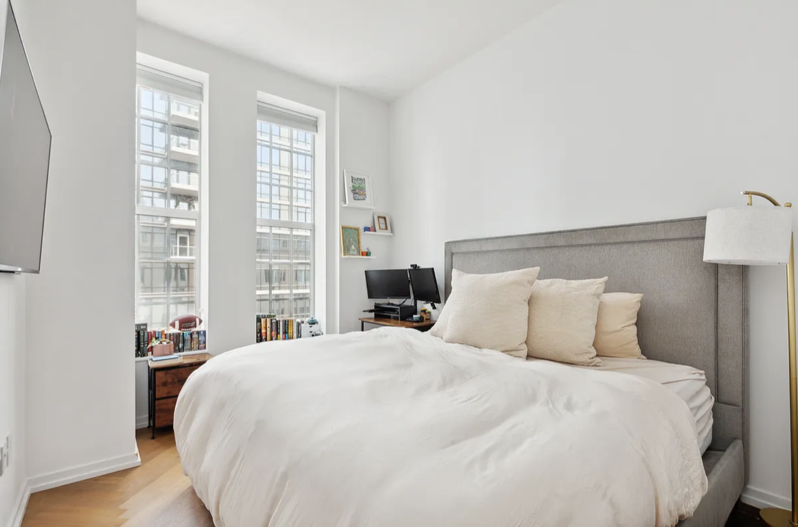 Welcome to true loft living at its finest. This spacious 1-Bedroom residence offers striking northern exposures, partial river & Manhattan skyline views, and a stunning fusion of industrial charm and modern sophistication. The open-concept chefs kitchen is thoughtfully designed with top-of-the-line integrated appliances, including a Dacor smart refrigerator, Bertazzoni gas range and microwave, and Asko dishwasherperfect for everyday living or entertaining in style. Sleek matte white custom cabinetry pairs beautifully with brushed Caesarstone concrete countertops, a hand-painted Kyoto tile backsplash, and statement lighting to create a kitchen thats as functional as it is beautiful.